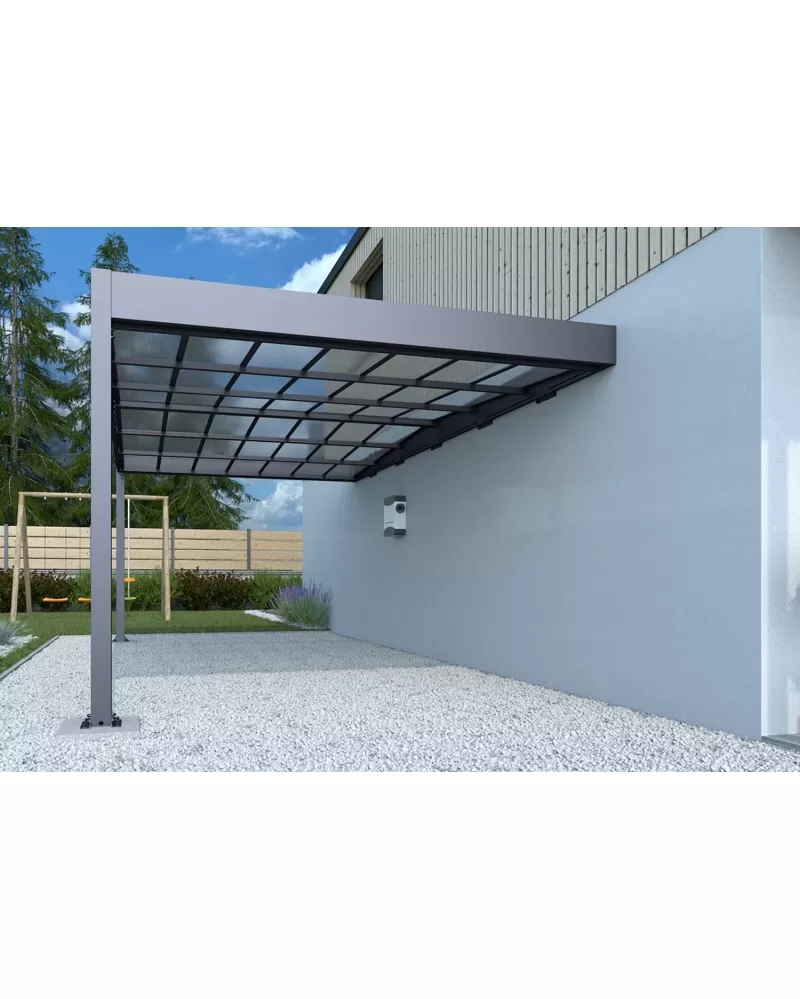• Celohliníkový přístřešek ke zdi skvěle poslouží jako garážové stání pro Váš automobil.