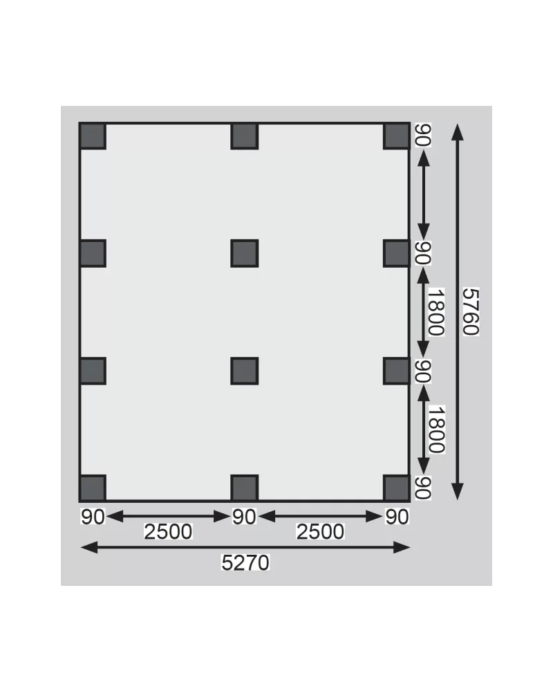 • vnější půdorys sloupků - š 5,27 x d 5,76 m