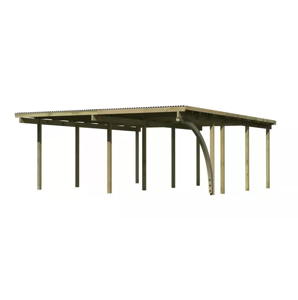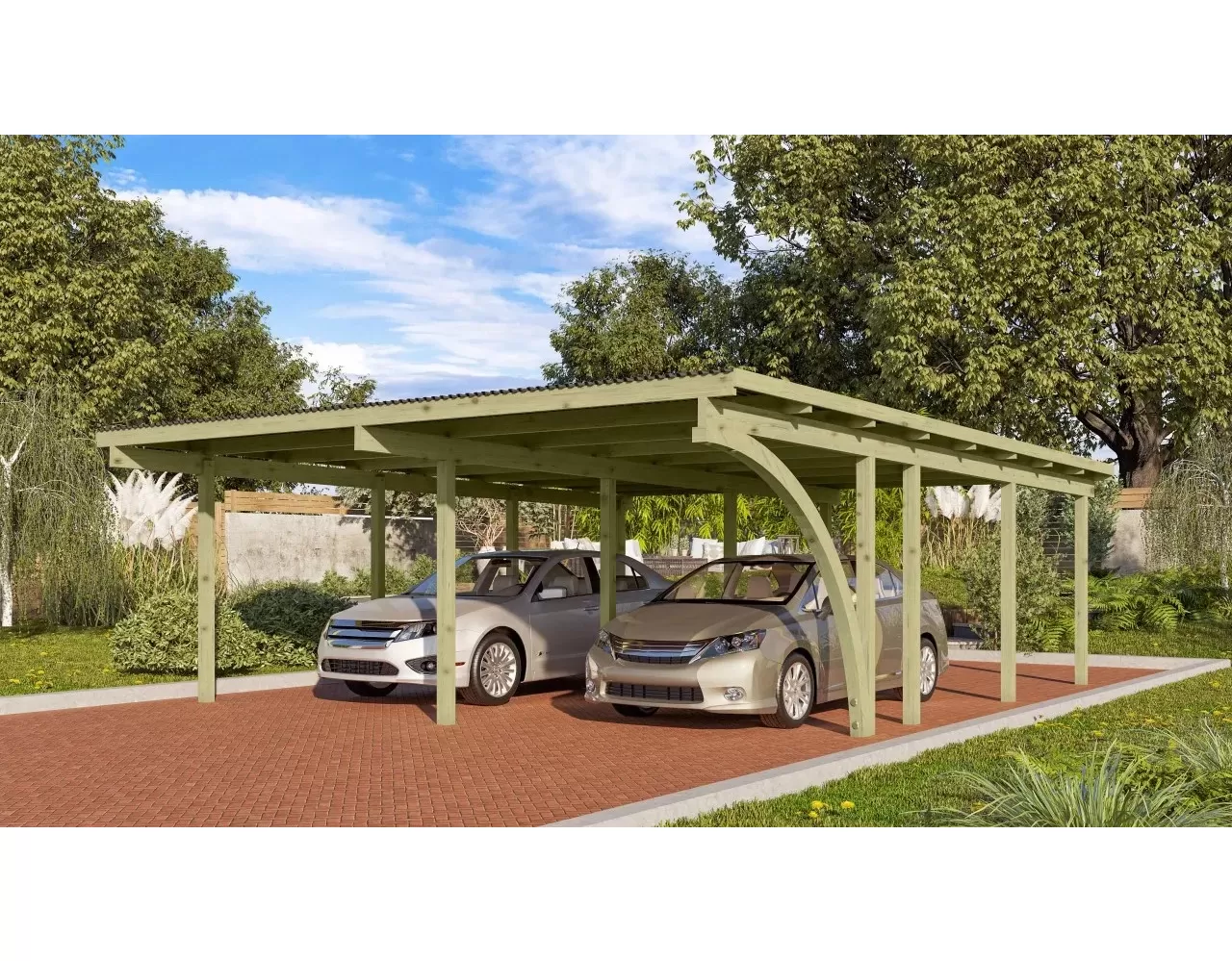 Dvojitý dřevěný přístřešek na auto, š 527 x d 576 x v 206 cm, zastavěná plocha 30 m2.