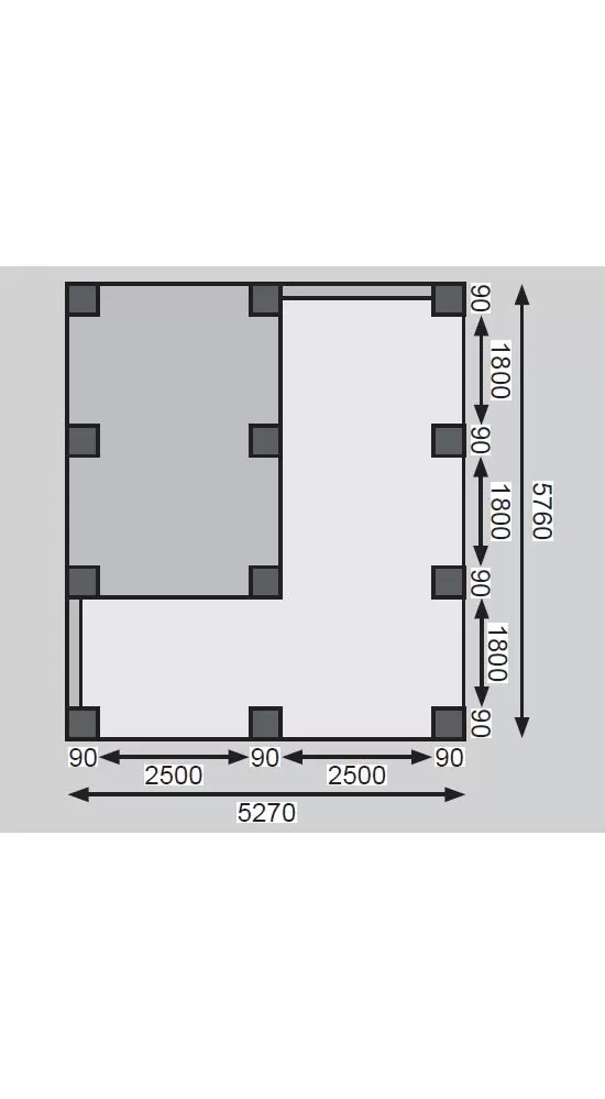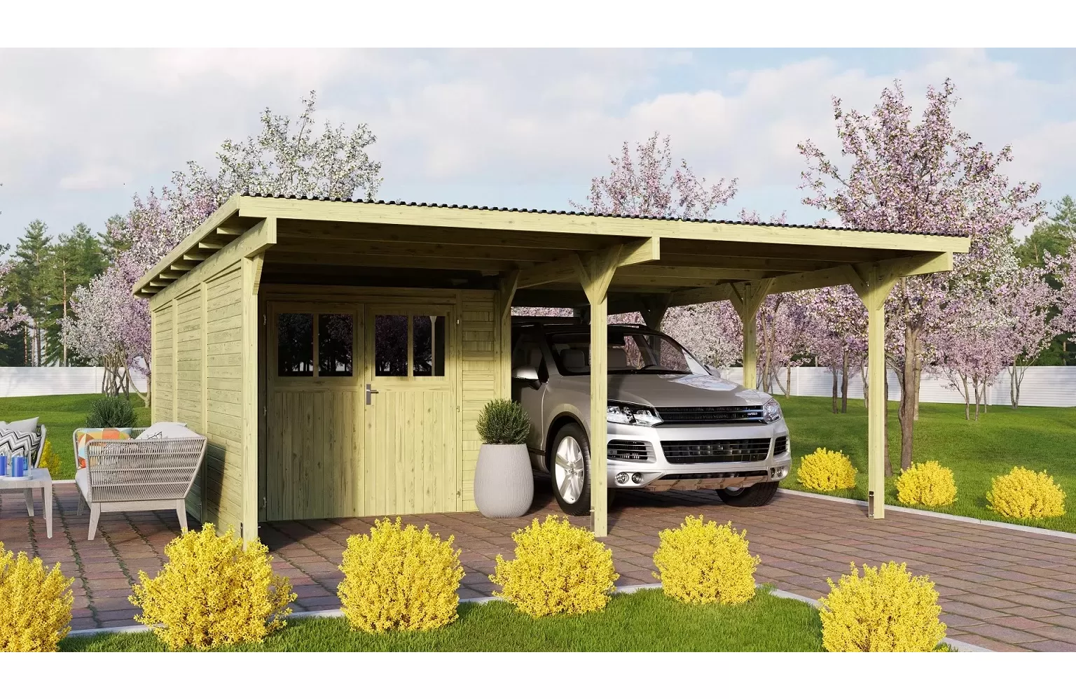 Přístřešek má obdélníkový tvar a svými rozměry vyhovuje většině modelů vozidel běžných na českém trhu. Celková zastřešená plocha je 5,63 x 6,76 m. Průjezdná výška je 206 cm. Střechu podpírá dvanáct dřevěných sloupků 9 x 9 cm. Konstrukce přístřešku je tlakově impregnována a je tak dobře chráněna proti dřevokazným houbám i hmyzu, ale i proti nepříznivým povětrnostním podmínkám. Impregnace je zdravotně nezávadná a naprosto bezpečná. Vzhledem k velkým plochám střechy a zatížení větrem je nutné připevnit přístřešek k zemi pomocí odpovídajících zemních kotev (nejsou obsahem dodávky - lze dokoupit jako příplatkové příslušenství).