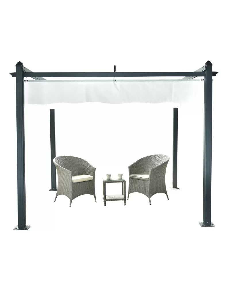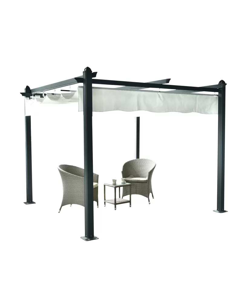 • Konstrukce pergoly je z odolné hliníkové slitiny a je nastříkaná práškovou vypalovanou barvou (komaxit), a proto odolává přírodním klimatickým vlivům.