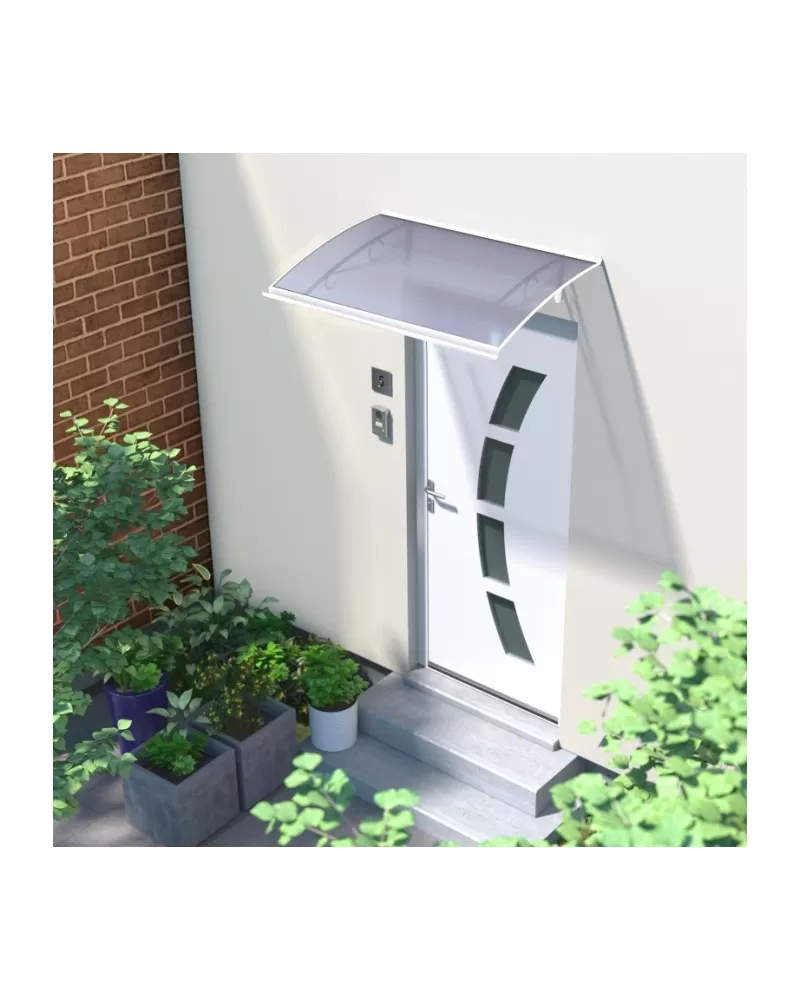 • Stříška nad dveře vyrobená z práškově lakovaného hliníku. Na rozdíl od stříšek s plastovou konstrukcí hliníková konstrukce perfektně odolává vlivům počasí, i po letech je pevná a stabilní. V zimě mrazem nekřehne a ani na silném letním slunci nedochází ke změnám barvy. Stříška je zasklená komůrkovým polykarbonátem síly 4,5 mm s oboustranným UV filtrem (značka LEXAN® - vyrobeno v Rakousku). Jde o velmi kvalitní značkový polykarbonát od jednoho z nejlepších světových výrobců.