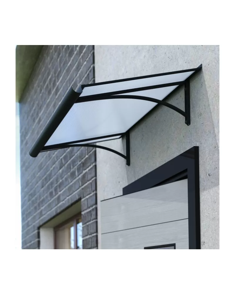 • Stříška nad dveře vyrobená z práškově lakovaného hliníku. Na rozdíl od stříšek s plastovou konstrukcí hliníková konstrukce perfektně odolává vlivům počasí, i po letech je pevná a stabilní. V zimě mrazem nekřehne a ani na silném letním slunci nedochází ke změnám barvy. Stříška je zasklená komůrkovým polykarbonátem síly 4,5 mm s oboustranným UV filtrem (značka LEXAN® - vyrobeno v Rakousku). Jde o velmi kvalitní značkový polykarbonát od jednoho z nejlepších světových výrobců.