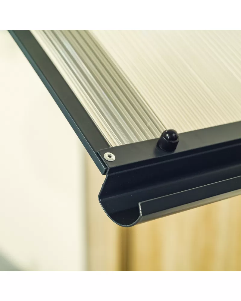 • Na rozdíl od stříšek s plastovou konstrukcí hliníková konstrukce perfektně odolává vlivům počasí, i po letech je pevná a stabilní.
