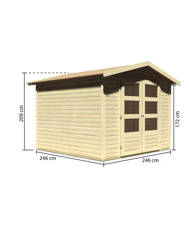Dřevěný domek KARIBU AMBERG 4 (82973) natur LG1705 Vnější rozměry - š 246 x d 246 cm.  Základní model dřevěného domku pro vaši zahradu.… Celý popis
