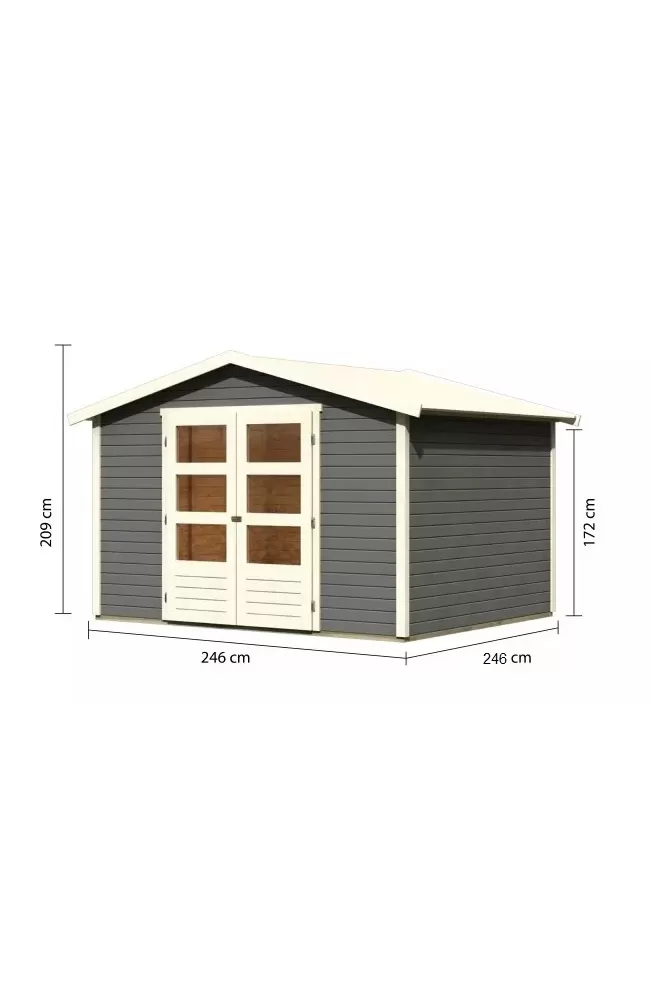 Dřevěný domek KARIBU AMBERG 4 (9223) terragrau LG3507 Dřevěný domek, síla stěny 19 mm, rozměry š 246 x d 246 cm, vnější plocha domku 6,05 m2. … Celý popis