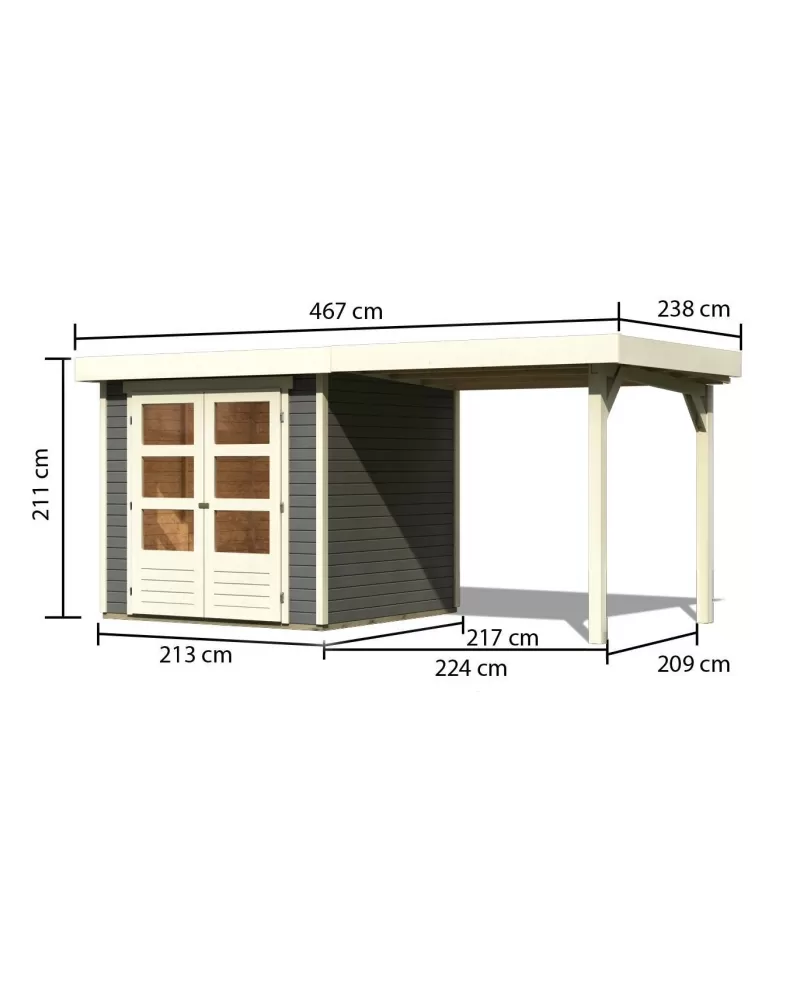 Dřevěný domek KARIBU ASKOLA 2 + přístavek 240 cm (82904) šedý LG1763