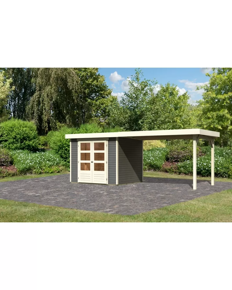 Dřevěný domek KARIBU ASKOLA 3 + přístavek 280 cm (82924) tm. šedý LG1769