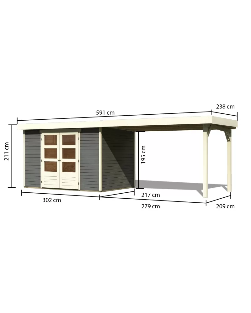 Dřevěný domek KARIBU ASKOLA 4 + přístavek 280 cm (92073) šedý LG1771