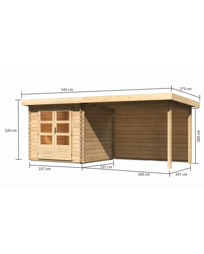 Dřevěný domek KARIBU BASTRUP 2 + přístavek 300 cm včetně zadní stěny (9301) natur LG2818