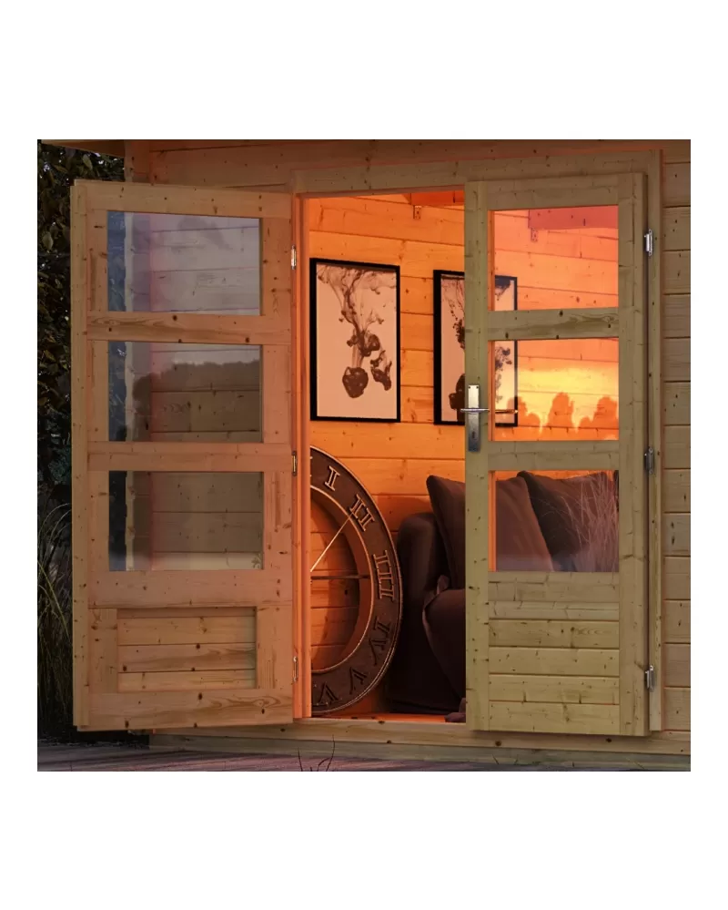 • Základní model dřevěného domku pro vaši zahradu. Tento model má pultovou střechu a dvoukřídlé dveře na pantech s oknem v každém křídle. Stavebním materiálem domku jsou dřevěné profily síly 28 mm perfektně vyfrézované ze severského smrku. Dodáváme jako stavebnici v rozloženém stavu, velkou výhodou této řady je patentovaný rohový spoj 6-Plus. Společně tak zajišťují nejen odolnou a stabilní konstrukci ale také robustní celkový vzhled. Střechu tvoří celistvá deska. To garantuje extrémně jednoduchou montáž, kterou zvládne každý český kutil.