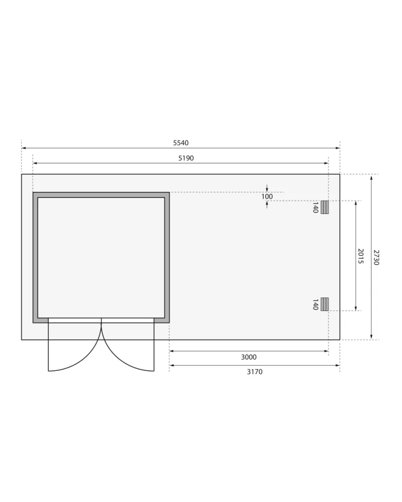 • Tato verze domku obsahuje i přístavek včetně zadní stěny délky 300 cm