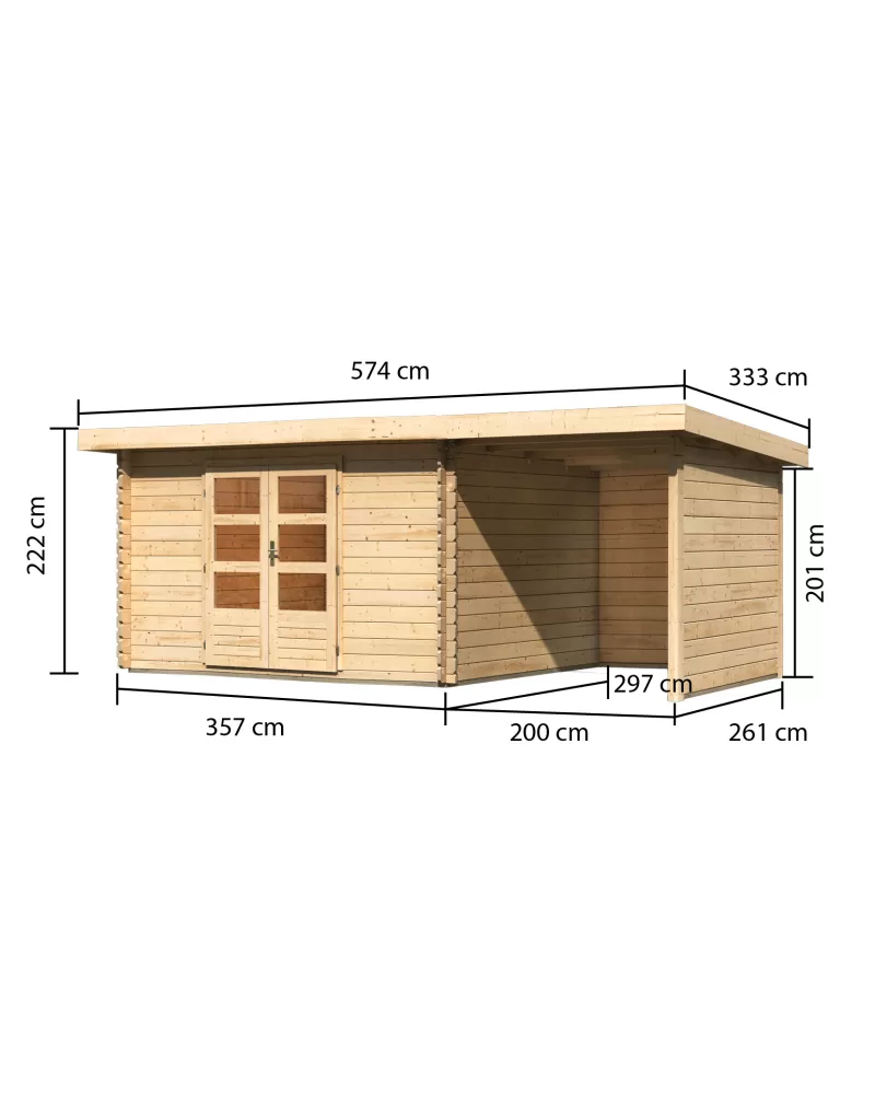 Dřevěný domek KARIBU BASTRUP 7 + přístavek 200 cm včetně zadní a boční stěny (78674) natur LG3023