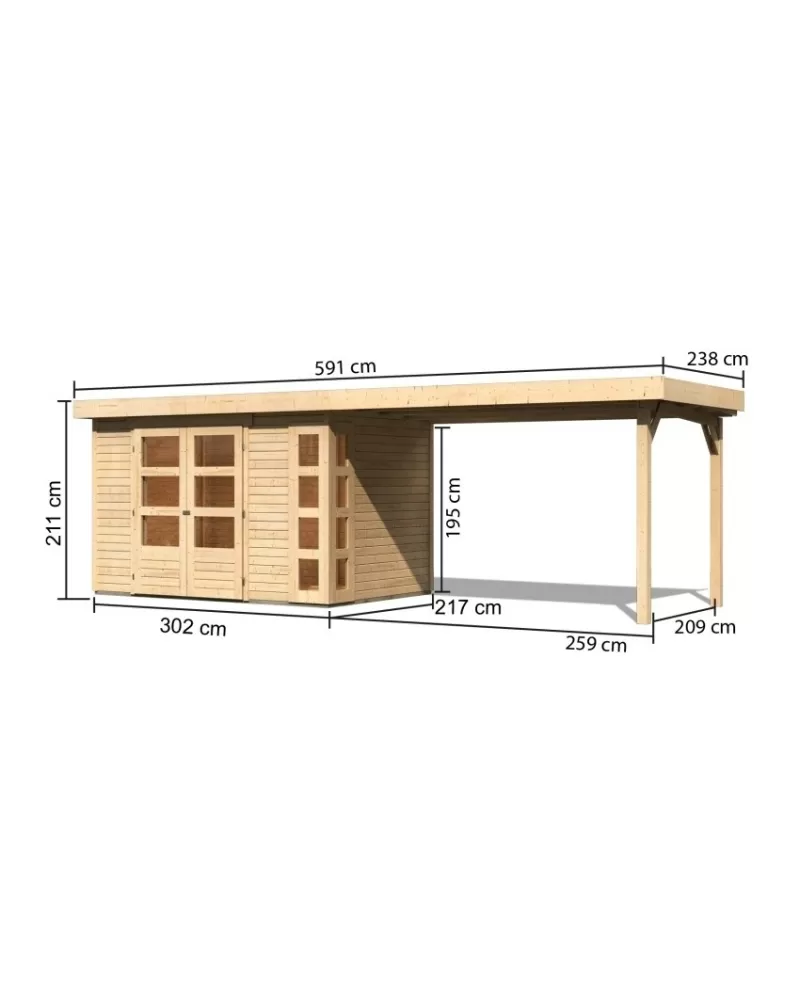 Dřevěný domek KARIBU KERKO 4 + přístavek 280 cm (82944) natur LG2975