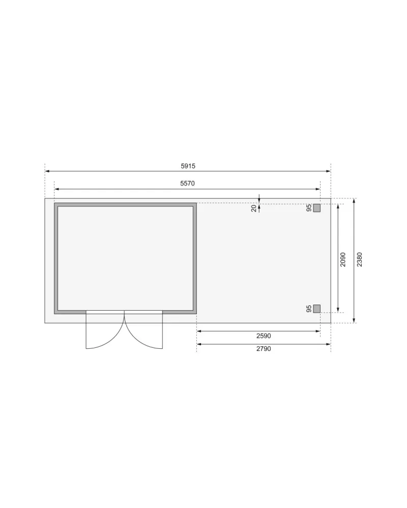 • Tato verze domku obsahuje i přístavek včetně zadní a boční stěny délky 280 cm