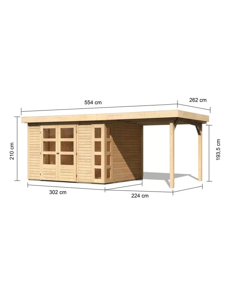 Dřevěný domek KARIBU KERKO 5 + přístavek 240 cm (9193) natur LG2983