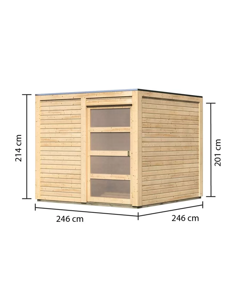 • střecha: plochá střecha, desky 16 mm (246 x 246 cm)