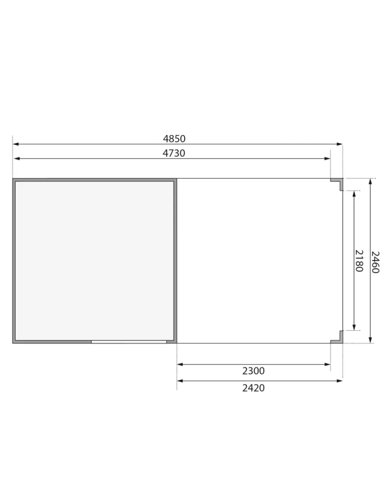 • střecha: plochá střecha, desky 16 mm (246 x 246 cm)
