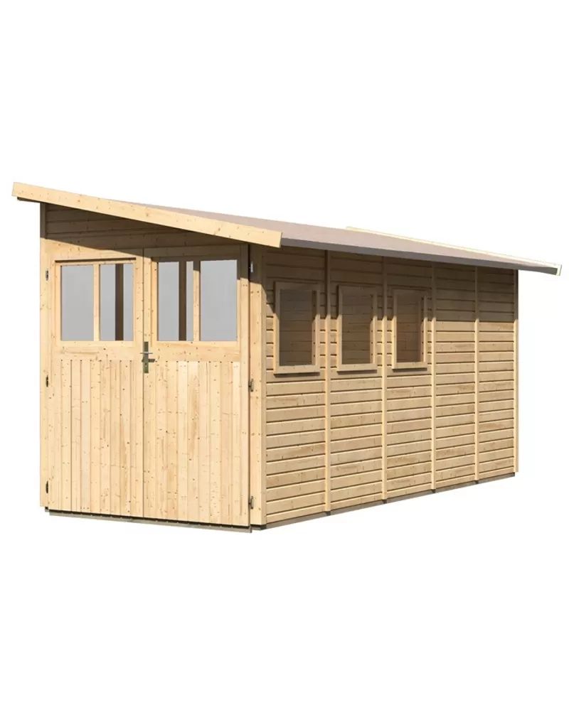 • Přírodní dřevo - před montáží musí být všechny stavební díly ošetřeny hluboko působícím základním nátěrem a preventivním nátěrem proti zamodrání a plísni, a to z vnější i vnitřní strany dílců. Pro konečný nátěr použijte i ve vnitřním prostoru povětrnostně odolnou lazuru s dobrými fyzikálními vlastnostmi, která ochrání dřevo proti vlhkosti a slunečnímu záření. Lazura by měla být zároveň voděodpudivá, světlostálá a vlhkosti odolná. Dbejte na to, aby lazura měla dostatek barevného pigmentu, protože jinak by mohlo dojít k zešednutí dřeva. Nepoužívejte žádný lak! Nechte si podrobně poradit od odborného prodejce barev, co se týká ochrany přírodního jehličnatého dřeva a dodržujte pracovní postup výrobce nátěrové hmoty. Další nátěr provádějte po dokonalém zaschnutí a vyvětrání. Důkladnou ochranou dřeva ovlivníte zásadně životnost zahradního domku. Povrchovou ochranu domku je nutné pravidelně opakovat a domek tak udržovat v dobrém stavu.