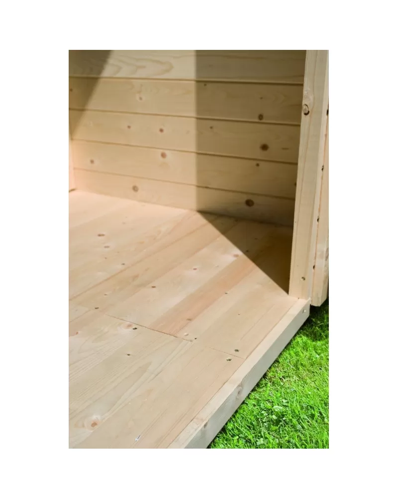 • Dřevěná podlaha pro domky KARIBU vyrobená ze smrkových profilů systém pero / drážka.