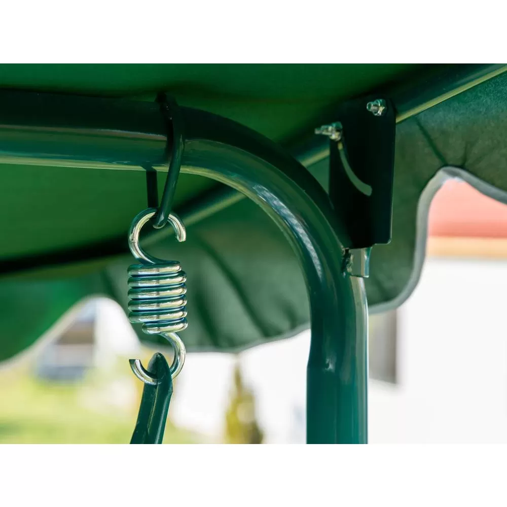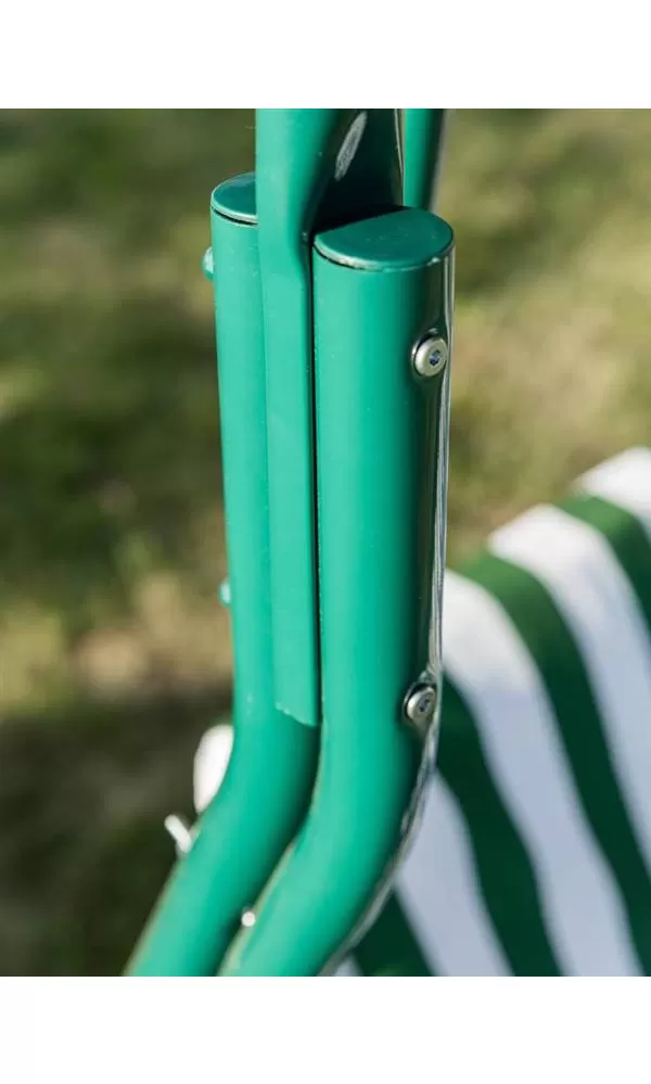 Zahradní houpačka STRIPY II má kovovou konstrukci ošetřenou práškovým lakováním v zelené barvě.