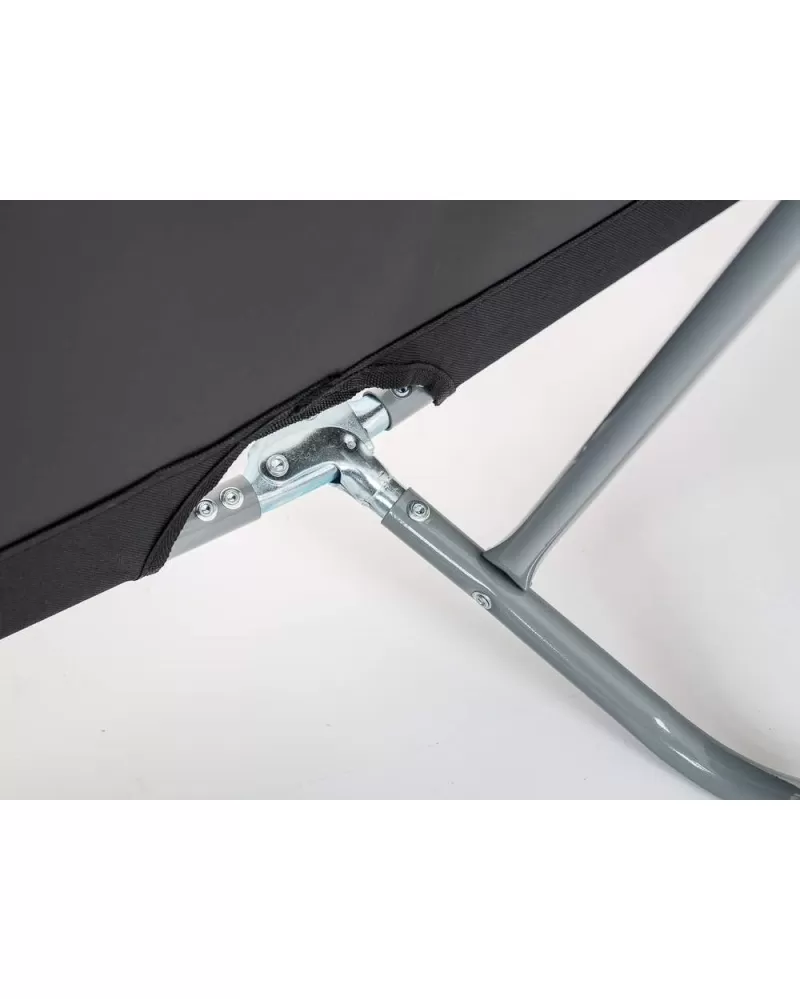 • Lehátko má stříbrnou kovovou konstrukci, výplň 600D oxford a výškově nastavitelný sklon opěradla a podnožky