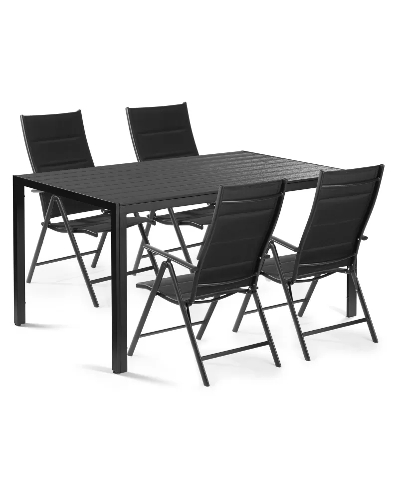 • Luxusní set složený ze 4 polohovatelných křesel, stolu s dřevo-plastovou deskou a hliníkouvou konstrukcí