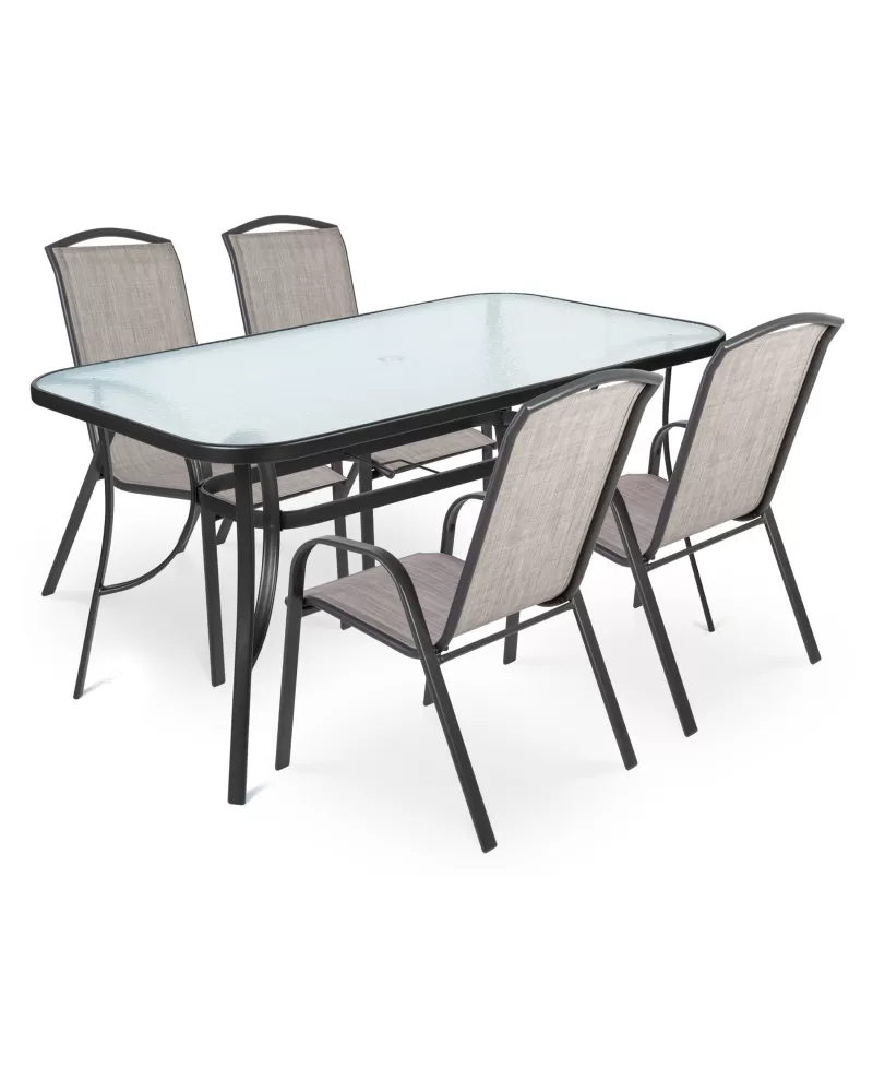 Sestava zahradního nábytku ELLA LIGHT FIELDMANN 98034559 Sestava kovového nábytku složená ze 4 křesel a stolu Stůl o rozměru 150 x 96 x 71… Celý popis