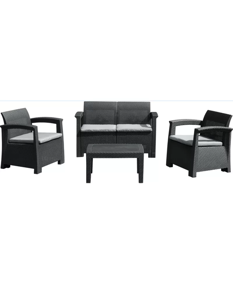 • Sestava je složena ze 2 křesel, 2.-místné sedačky a konforenční stolku