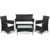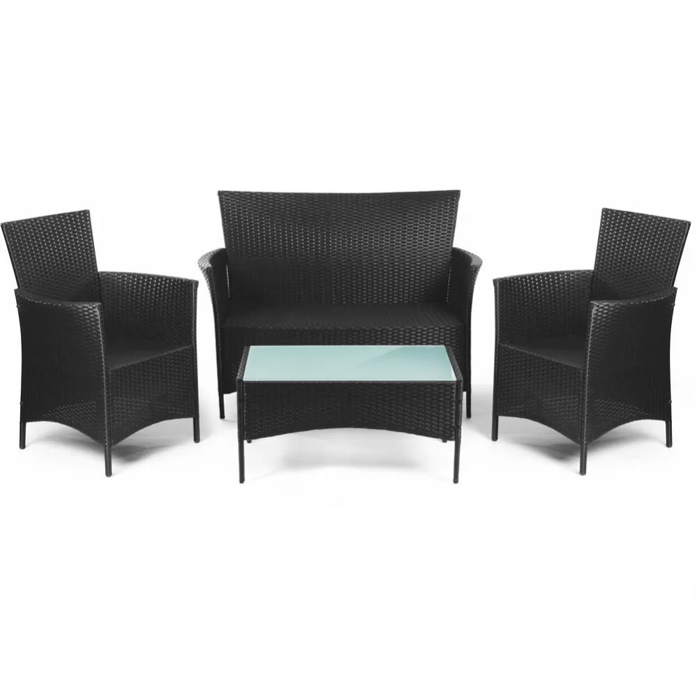 Sestava zahradního nábytku FIELDMANN Evavyrobená z vysoce kvalitního umělého ratanu a složená z ze dvou křesel, pohovky a stolku s deskou z tvrzeného skla.