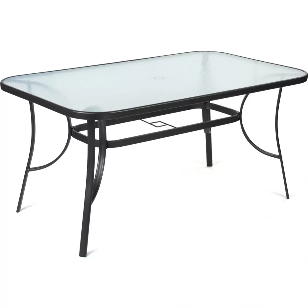 • Deska stolu je vyrobena z tvrzeného skla a v jejím středu je otvor pro slunečník