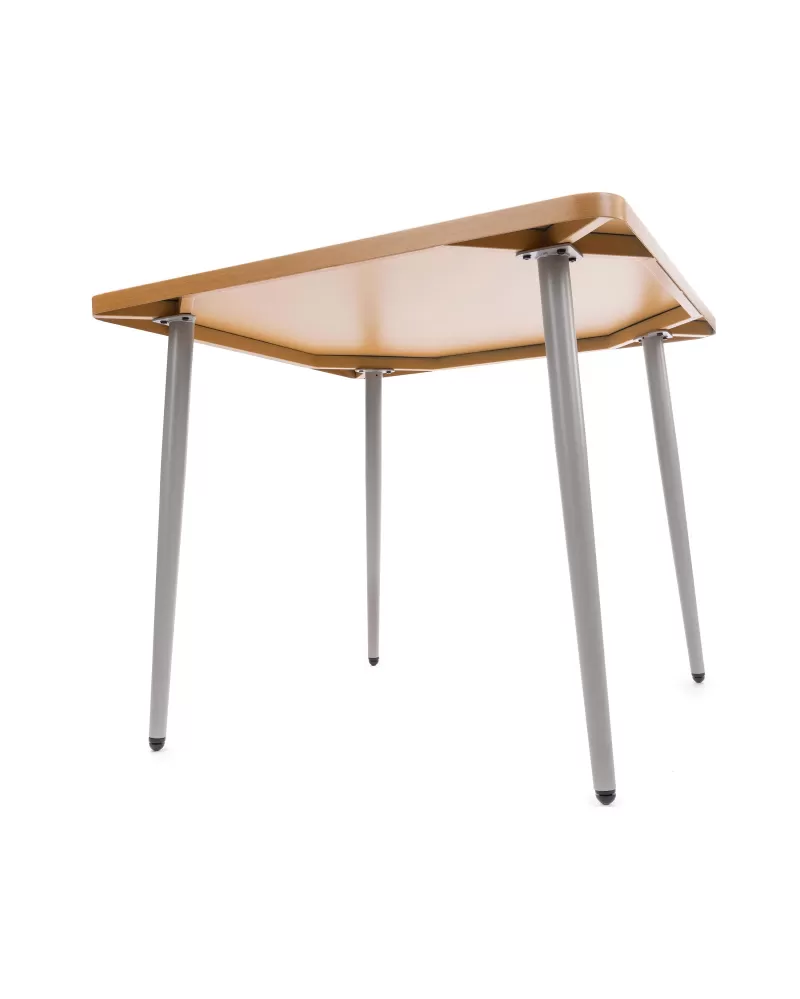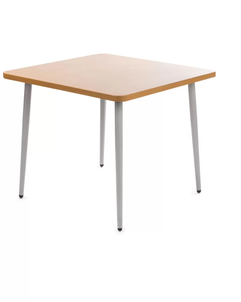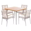 • Set obsahuje čtyři robustní ocelová křesla s rozměry 56 × 60 × 86 cm a čtvercový stůl s deskou s nažehlenou fólií imitující přírodní dřevo o rozměrech 90 × 90 × 74 cm.