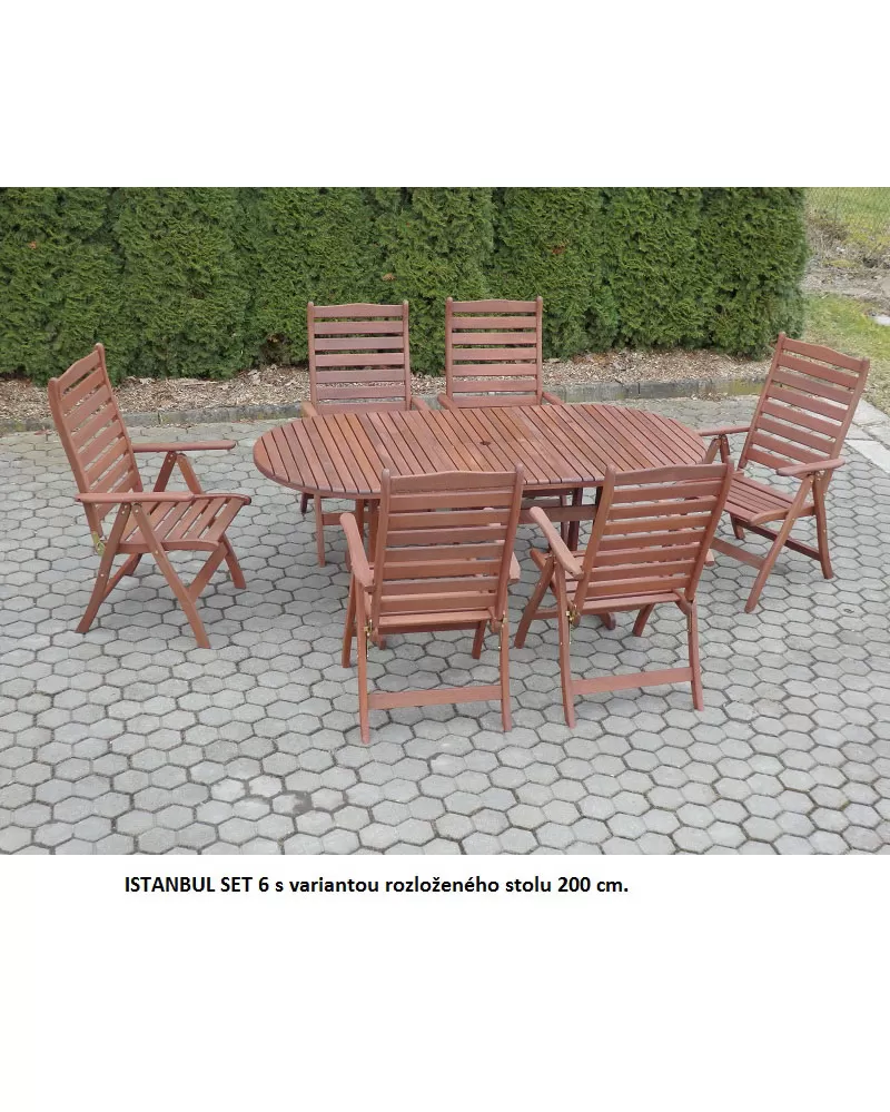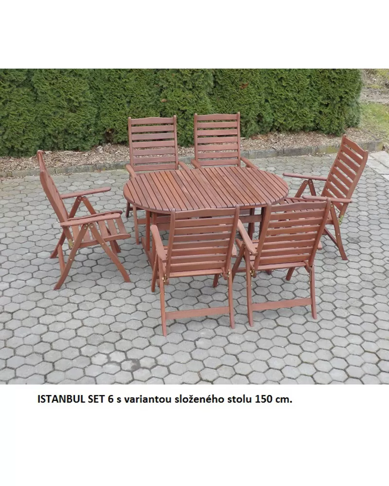 Zahradní sestava Meranti ISTANBUL SET 6 V-Garden 26ISTANBUL_6set Luxusní masivní stolová sestava 6-ti polohovatelných křesel a rozkládacího… Celý popis