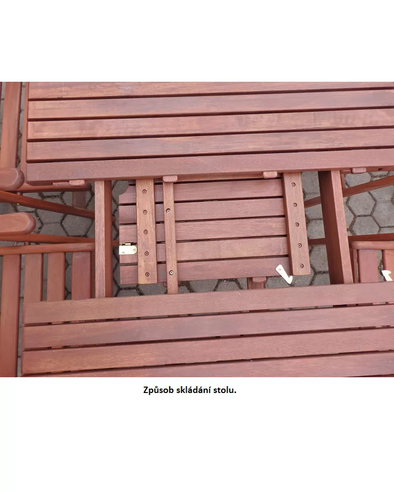 • Luxusní masivní stolová sestava 6-ti polohovatelných křesel a rozkládacího stolu z exotickeko, velice trvanlivého a tvrdého dřeva meranti