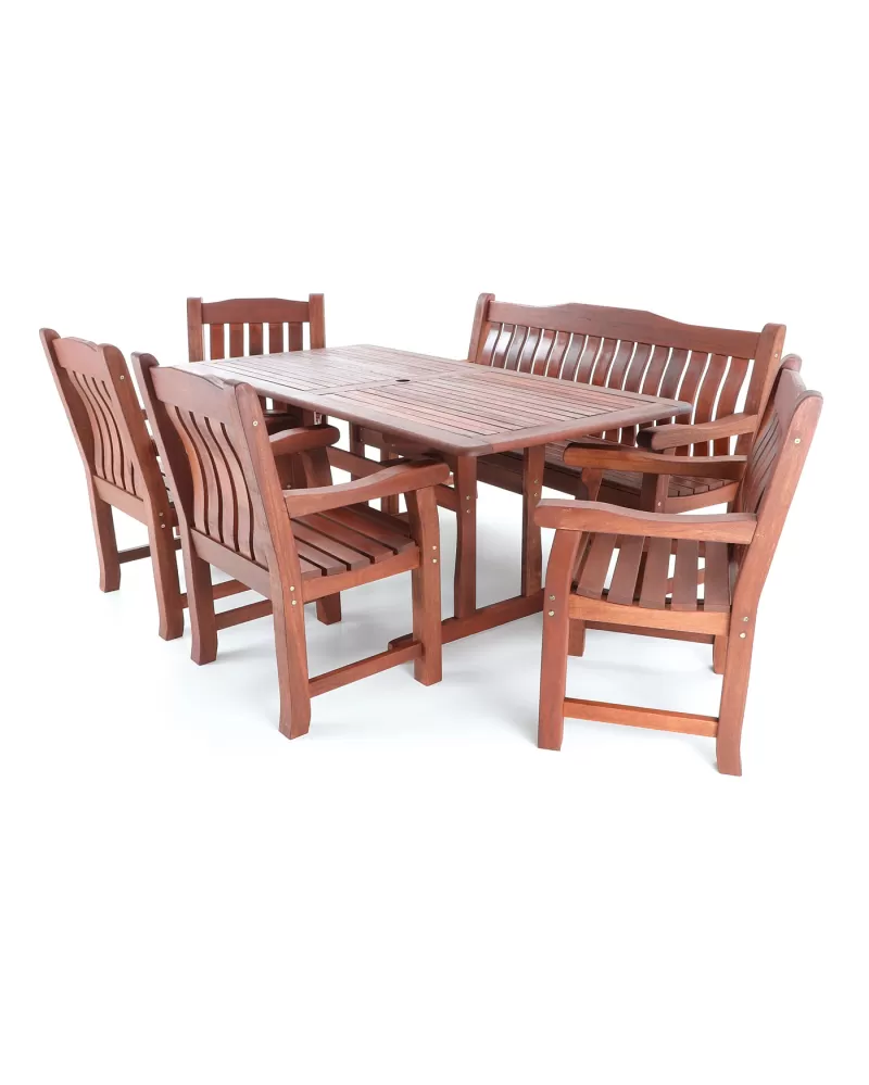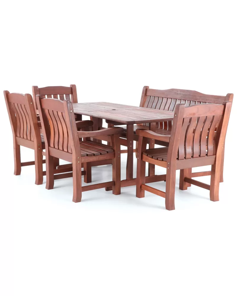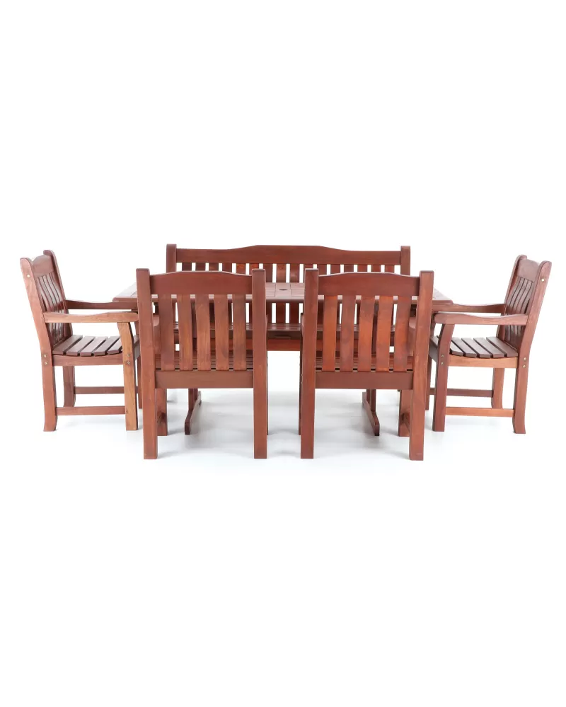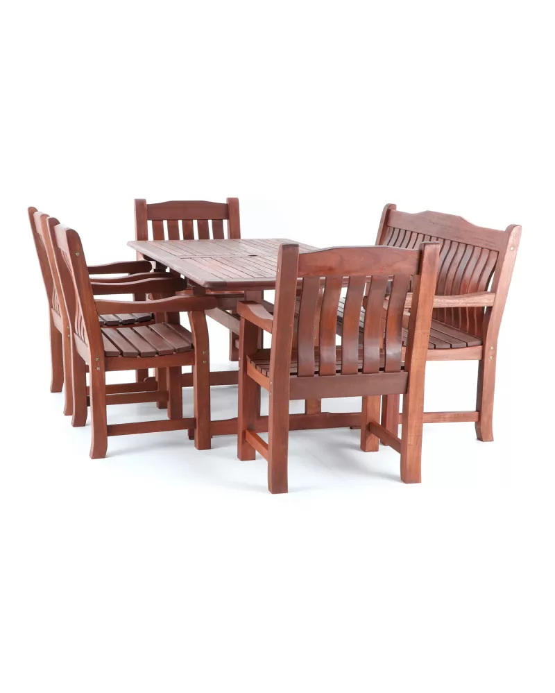 • Nábytek MERANTI RODOS SET 7 je vyroben z tmavě červeného meranti.