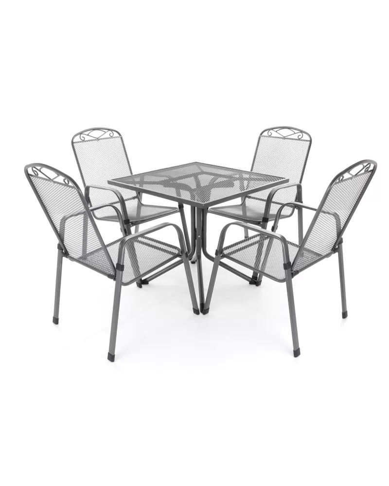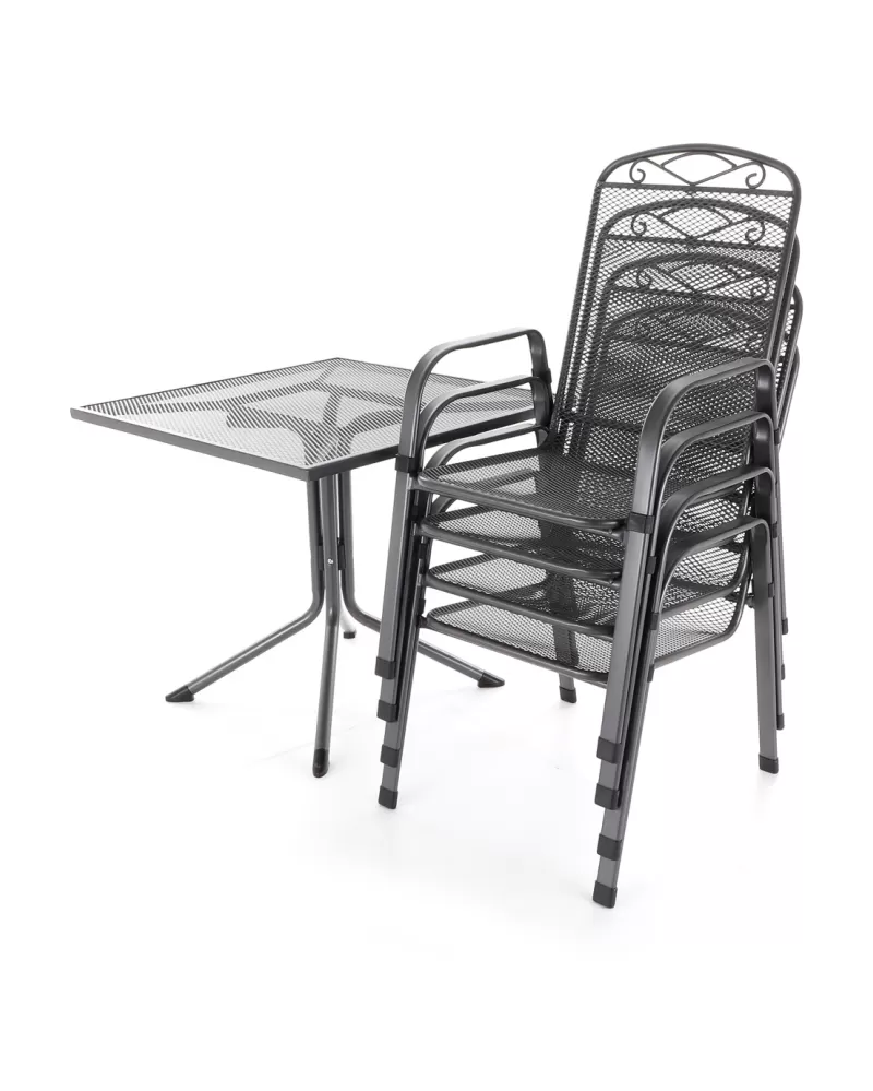 Zahradní sestava VeGA MFG ZINGST 4 - 80 Stolová sestava se skládá z: 4x kovové Křeslo ZINGST - nový vzor detailu zdobení židle - vidíte na… Celý popis