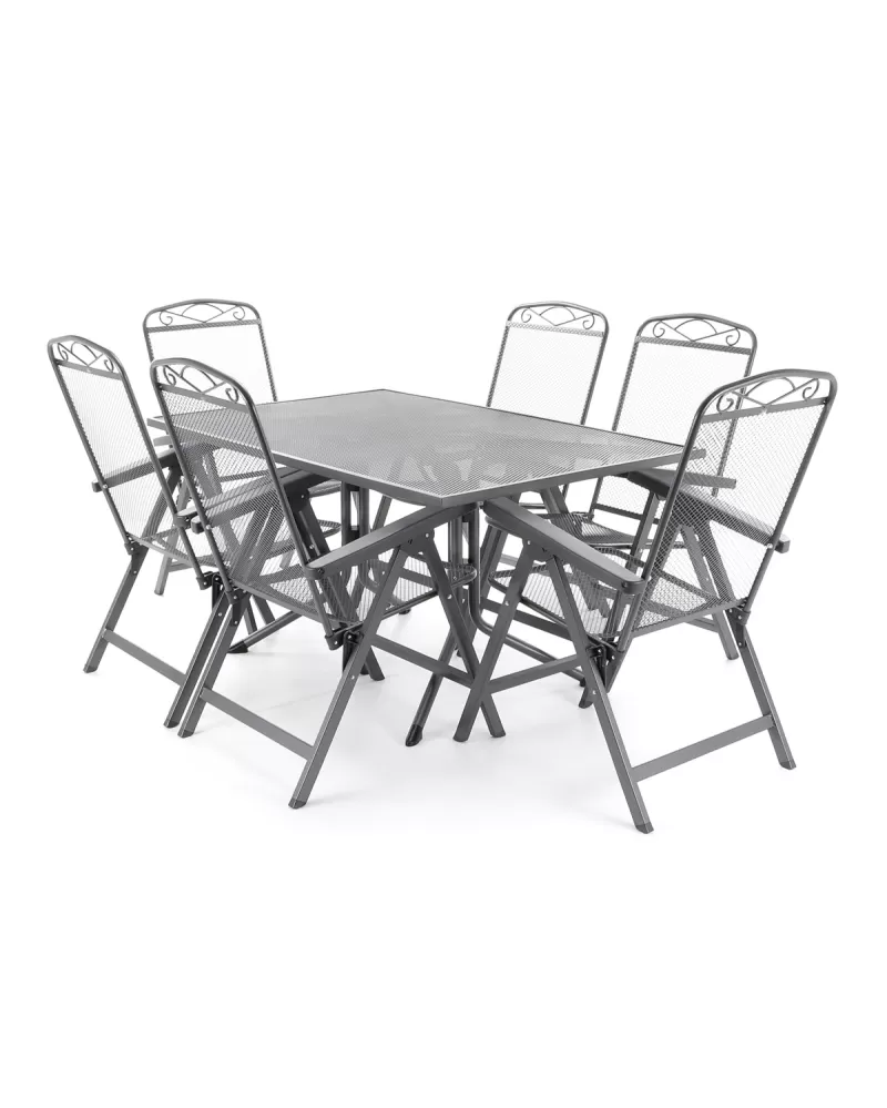 Zahradní sestava VeGA MFG ZINGST 6 De Lux - 140 Stolová sestava se skládá z: 6x kovové polohovatelné Křeslo ZINGST II. Rozměry: 105 x 65… Celý popis