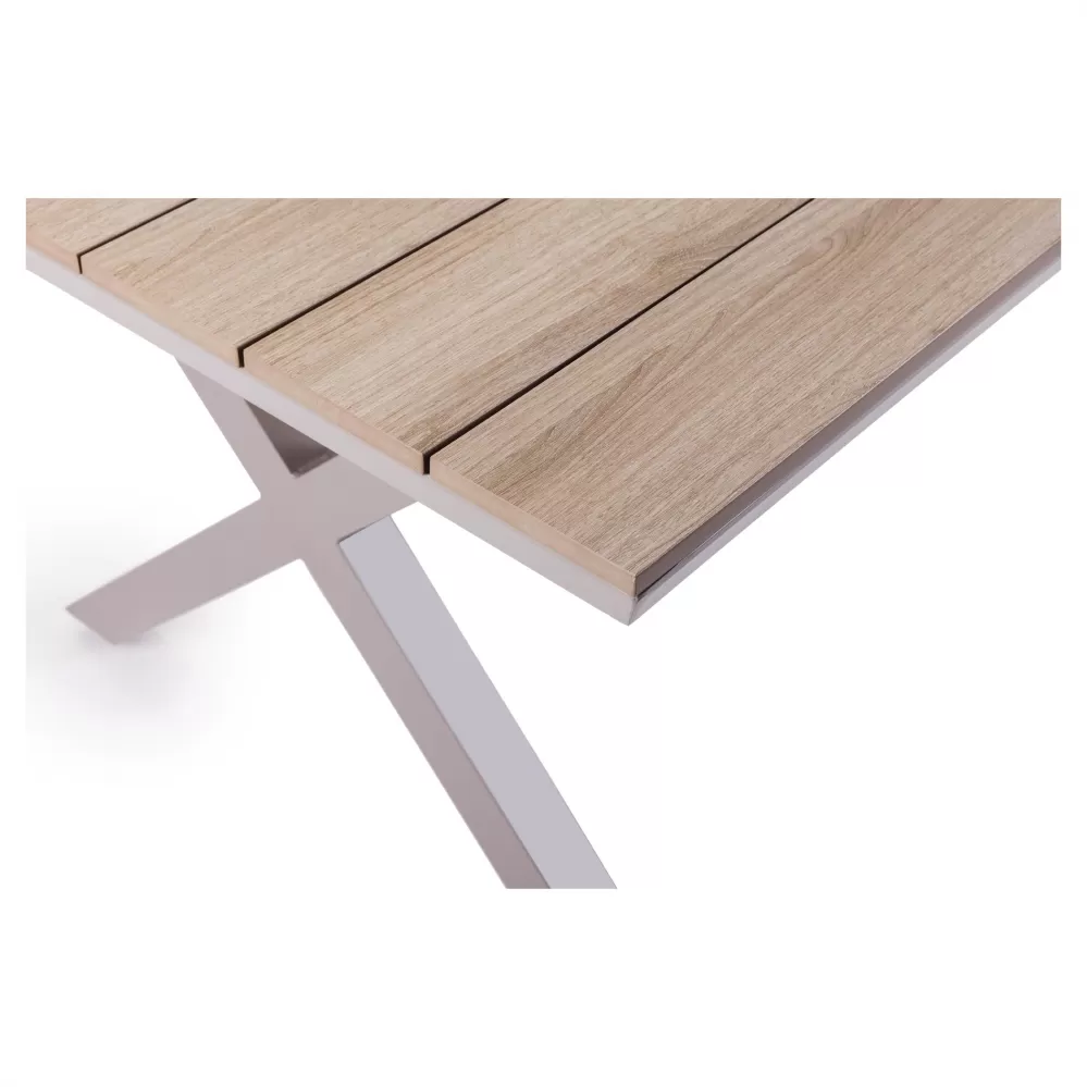 Chcete si užívat letní pohodu na zahradě a zarelaxovat si třeba u šálku dobrého čaje u venkovního stolu? Tak přesně pro vás bude tou správnou volbou designový stůl Fieldmann s perfektní úpravou, která nevyžaduje žádnou údržbu. Je vhodný pro vnitřní i venkovní použití. Deska stolu je vyrobena z polywoodu, imitace dřeva, a je usazena na hliníkovém rámu. Stůl je tak odolný proti povětrnostním vlivům. S rozměry desky 180 × 100 cm a výškou 75 cm je tak vhodný i na terasy a balkóny.