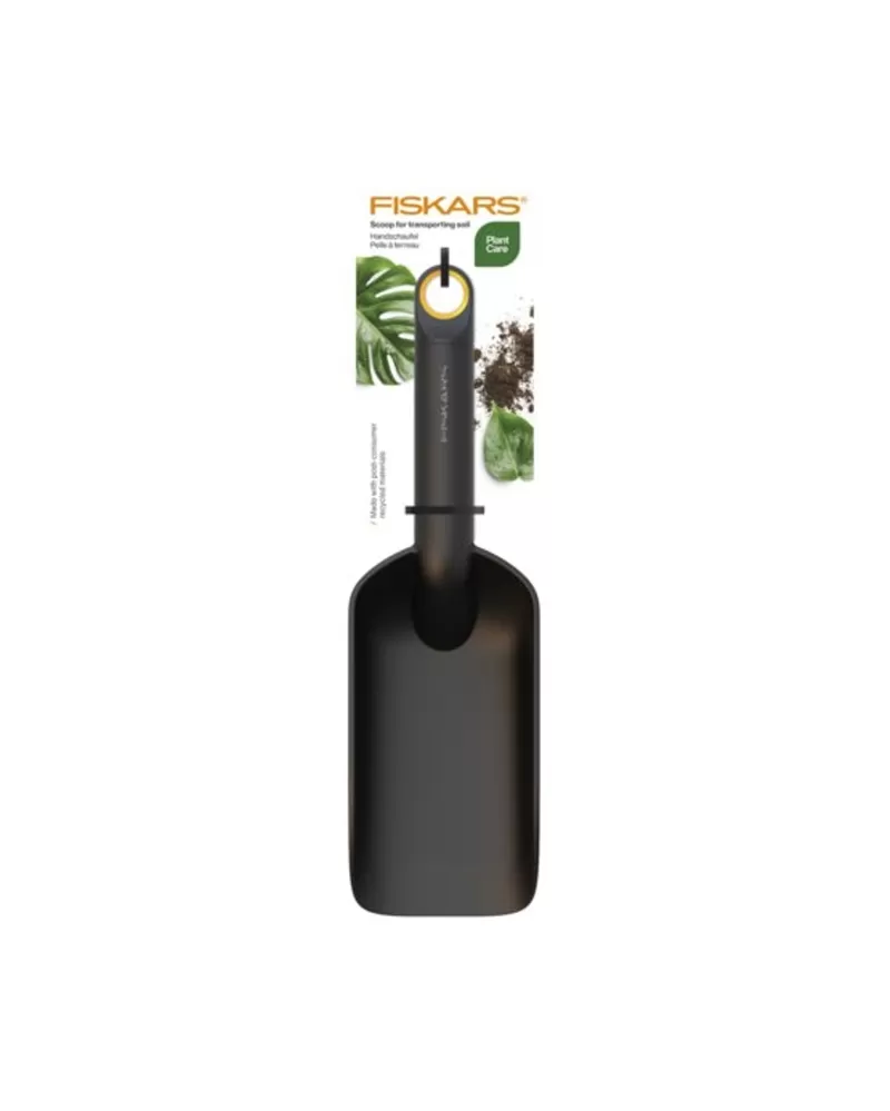 • Lopatka na zeminu Fiskars má ideální velikost pro přenášení půdy do středně velkých květináčů na terasách a balkonech