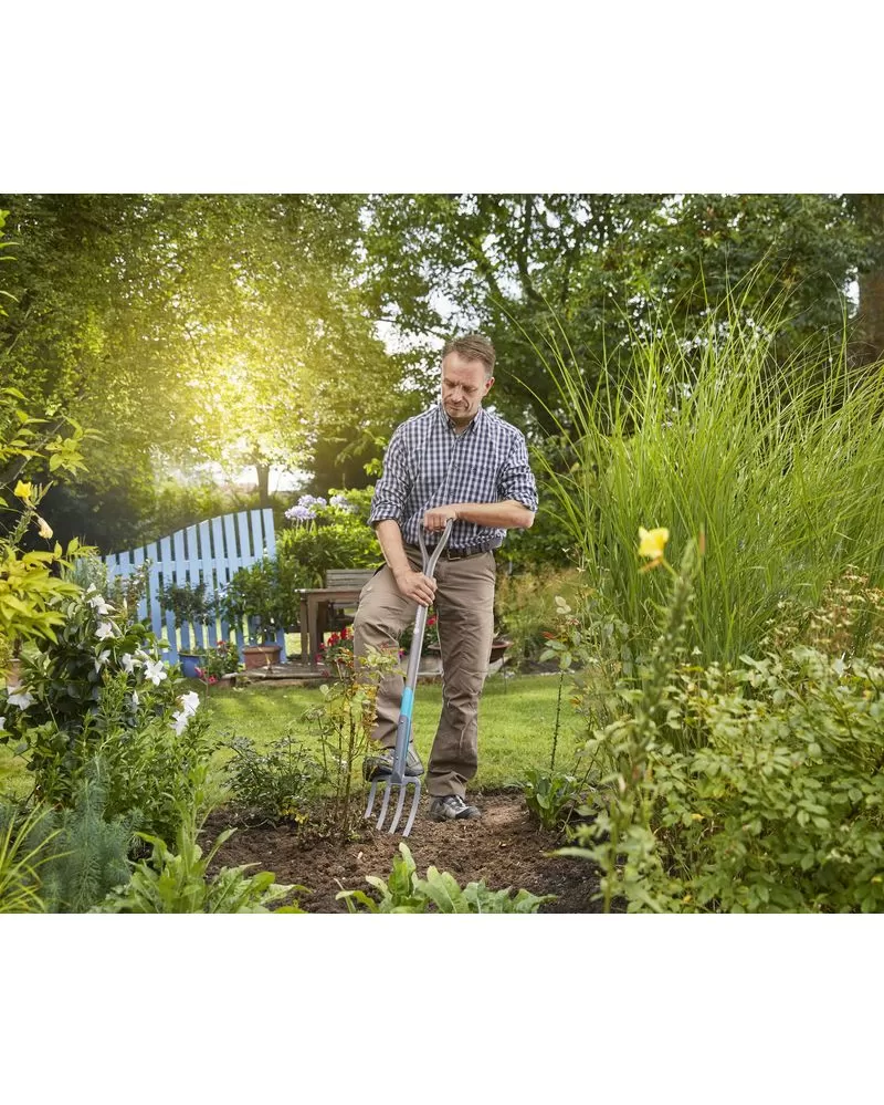 • GARDENA rycí vidle NatureLine je pevné nářadí pro rytí bez poškození kořenů a pro kopání a kypření půdy především na záhoncích s rostlinami