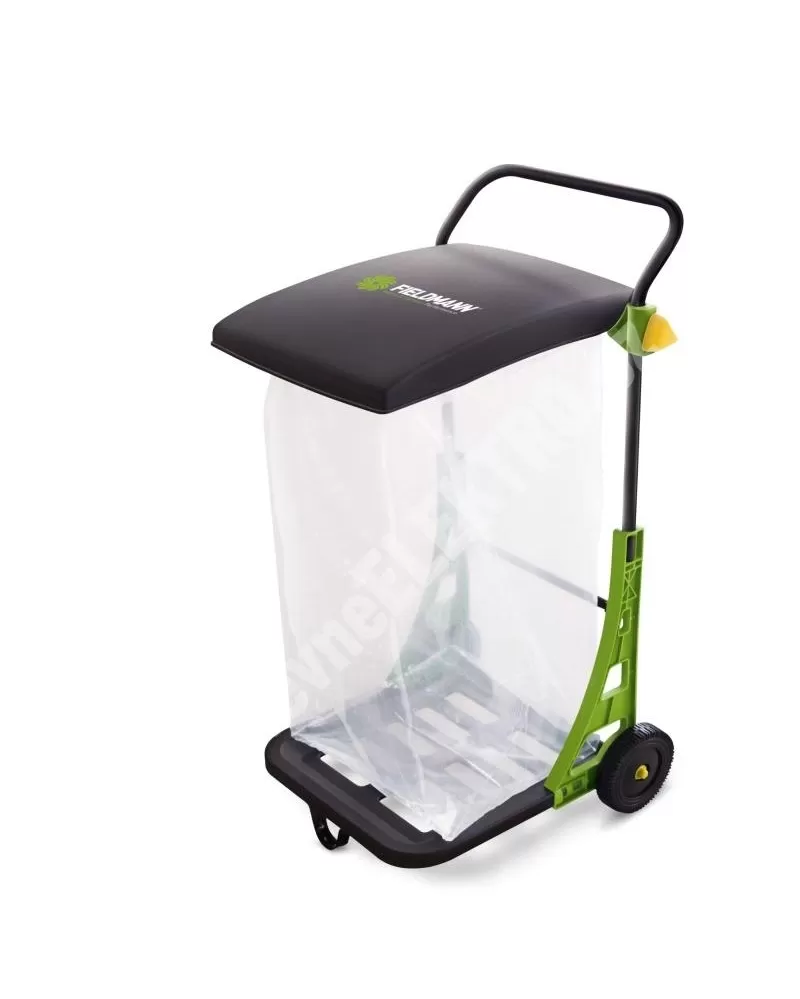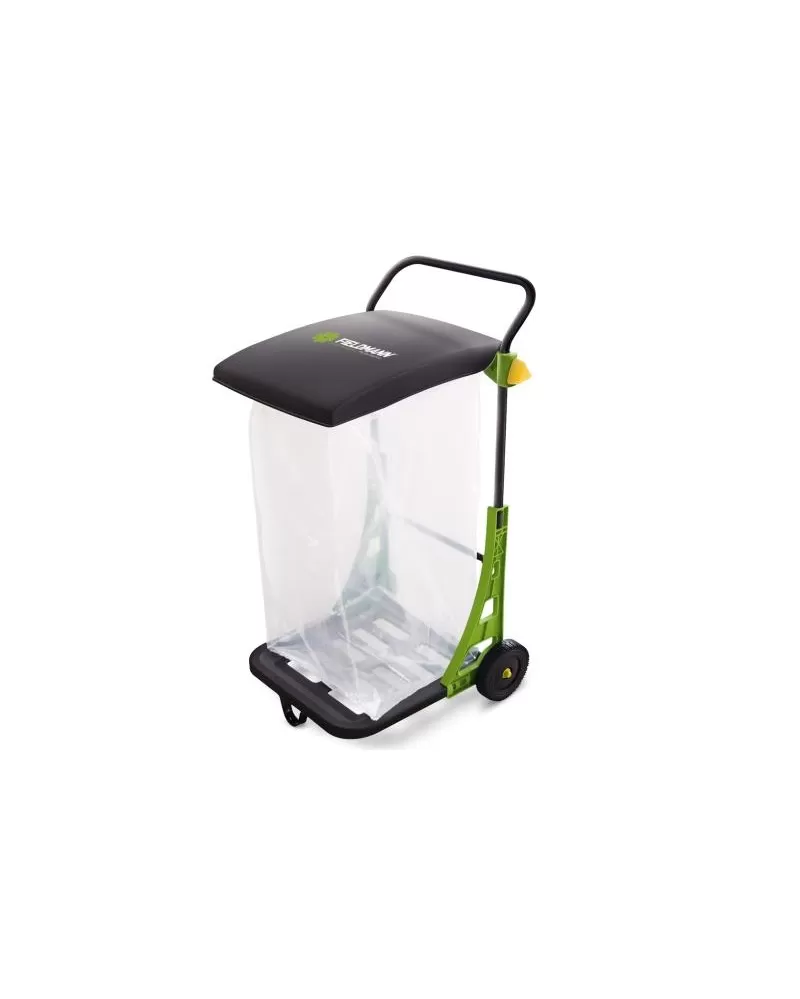 Mobilní vozík FIELDMANN FZO 4001 pro sběr zahradního odpadu – listí, plevele, trávy, ale i nečistot v dílně a kolem domu – je vybaven základní jednoduchou a dostatečně pevnou konstrukcí s rukojetí a kolečky o průměru 145 mm, takže bez problému zvládne jízdu po nerovném terénu zahrady i po trávníku bez jeho poškozování. Na konstrukci se pomocí klipu upevňuje sběrný vak o objemu 80 l, přičemž umožňuje nést zátěž až 25 kg.