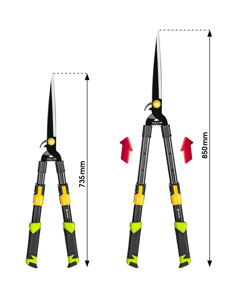 Teleskopické pákové nůžky FZNR 1030 Fieldmann s hmotností 1 280 g jsou vám připraveny kdykoliv pomoci s efektivní úpravou rostlin a keřů na vaší zahradě. Délku nůžek si můžete zvolit v rozmezí od 73,5 cm do 85 cm. Zvládnete tak práci i na hůře dostupných místech bez nutnosti použít žebřík.