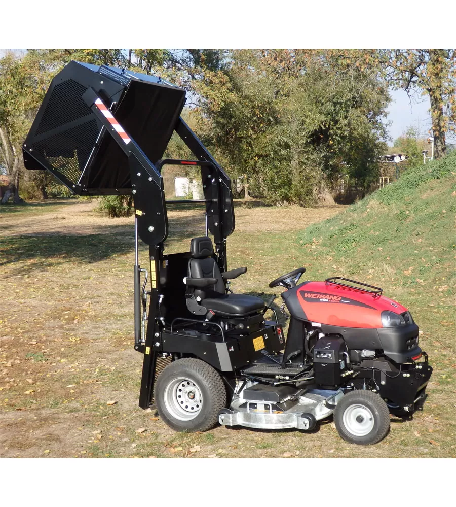 • Profi vyklápění koše: Silný hydro motor vyklápění výrazně šetří čas a námahu obsluhy při vyklápění 600 litrového koše. Společně s patentovaným senzorem naplnění zároveň umožňuje chytře využít kapacitu koše. Zdvih koše je do výšky až 1950mm, což výrazně usnadňuje čas na úklid posečené trávy do přistaveného kontejneru nebo návěsu.