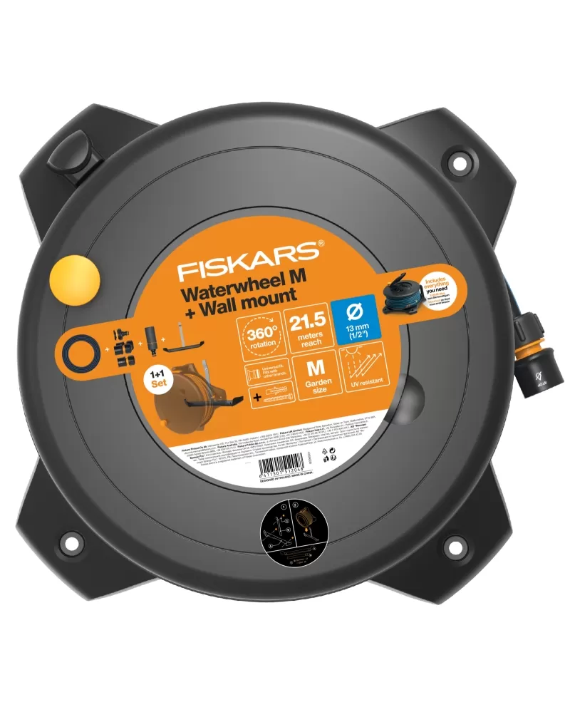 Sada bubna s hadicou M 1/2", dosah 21,5 metra s nástenným držiakom Fiskars 1059608