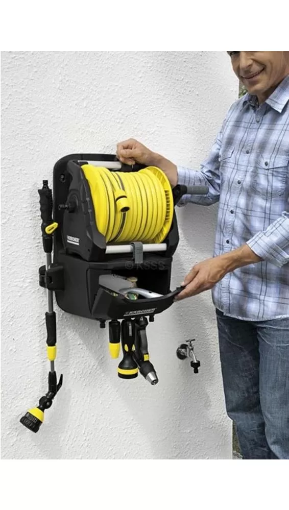 • Vhodné pro všechny běžné zahradní hadice (kapacita: 30 m 1/2"-hadice nebo 20 m 5/8"-hadice nebo 12 m 3/4"-hadice).