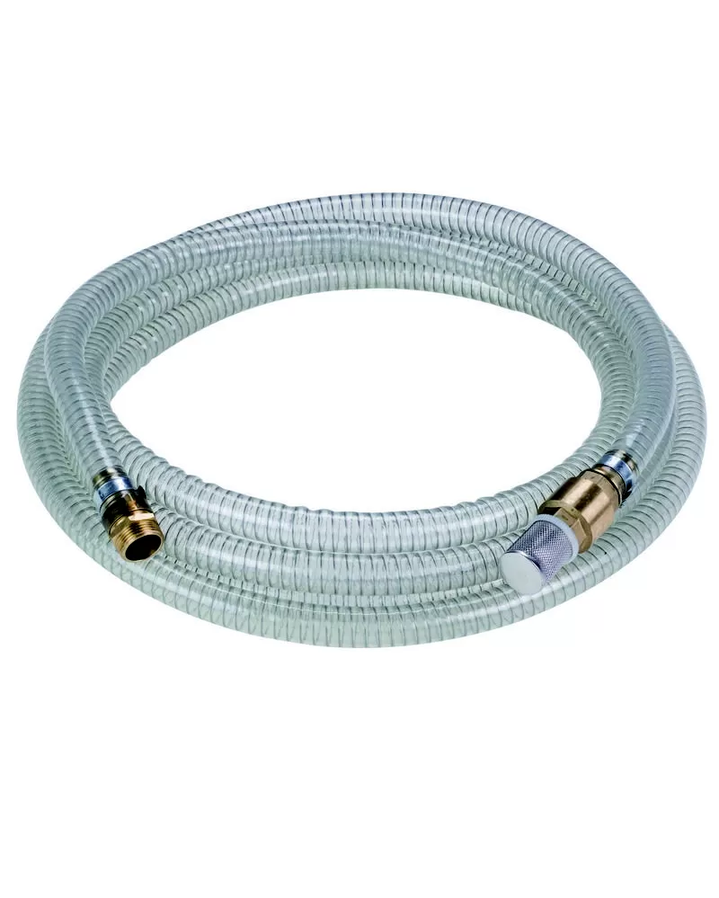 • Mimoto sada obsahuje mosazný sací koš s integrovaným zpětným ventilem s jemnými oky z ušlechtilé oceli a pro bezpečné upevnění dvě hadicové spony z oceli