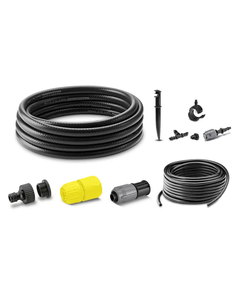 • Tenkou hadici (10 m) připojíte manžetami (10 ks) pomocí integrované jehly přímo na Kärcher Rain System® bez použití nářadí.