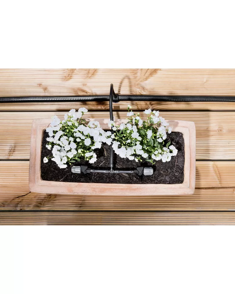 • Květináče a truhlíky můžete pohodlně zalévat hadicovým systémem a manžetami pro kapénkovou závlahu.