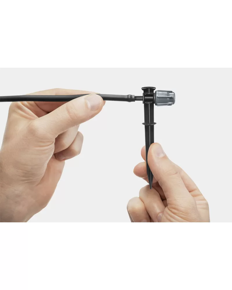 • O zavlažování v květináčích se starají manžety pro kapénkovou závlahu (15 ks), které lze upevnit pomocí kolíků (15 ks).