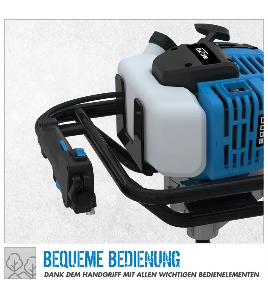 Motorový půdní vrták, určený k vyvrtávání děr v lehkých nebo středně těžkých půdách.